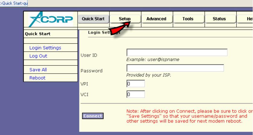 3. Введите логин "Admin" и пароль "Admin". Нажмите на кнопку "Enter" на вашей клавиатуре. В появившемся окне нажмите на кнопку "Setup".